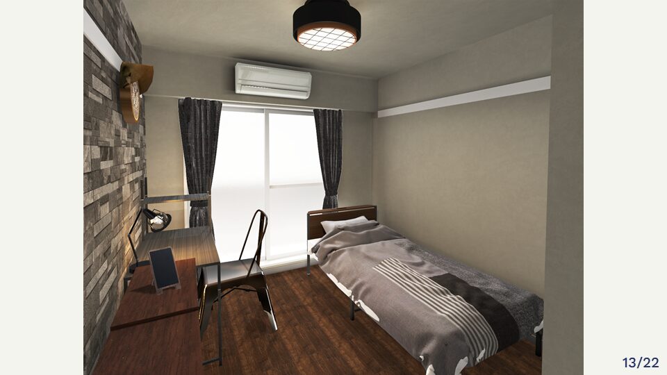 完成予想図のイメージどおりの寮室が完成。学びを実際の空間として形にすることができました。