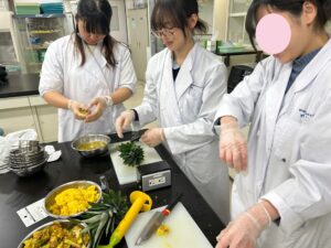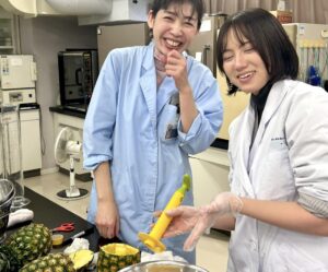 パイナップルの甘い香りが教室中に広がっています