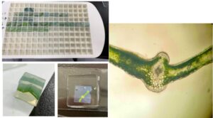 そこから彼らは、寒天の濃度を3%、4%……と上げ、ついには透明度の高いアガロースに切り替え、「6%」という独自の最適解にたどり着きました!6%アガロースゲルは例えればハードグミのような固さです。これにより、葉の組織を支えながら、0.1mm以下の薄い切片を作ることが可能になったのです。