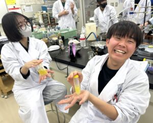 実習を通じて、商品の安心・安全を守る仕事に強い関心を持ち、就職活動では品質管理の仕事を目指しました。その熱意が実を結び、見事、大手化粧品OEMメーカーの内定を勝ち取りました。4月からは、たくさんの人の手に渡る化粧品の品質を支える専門職として、新たな一歩を踏み出します。